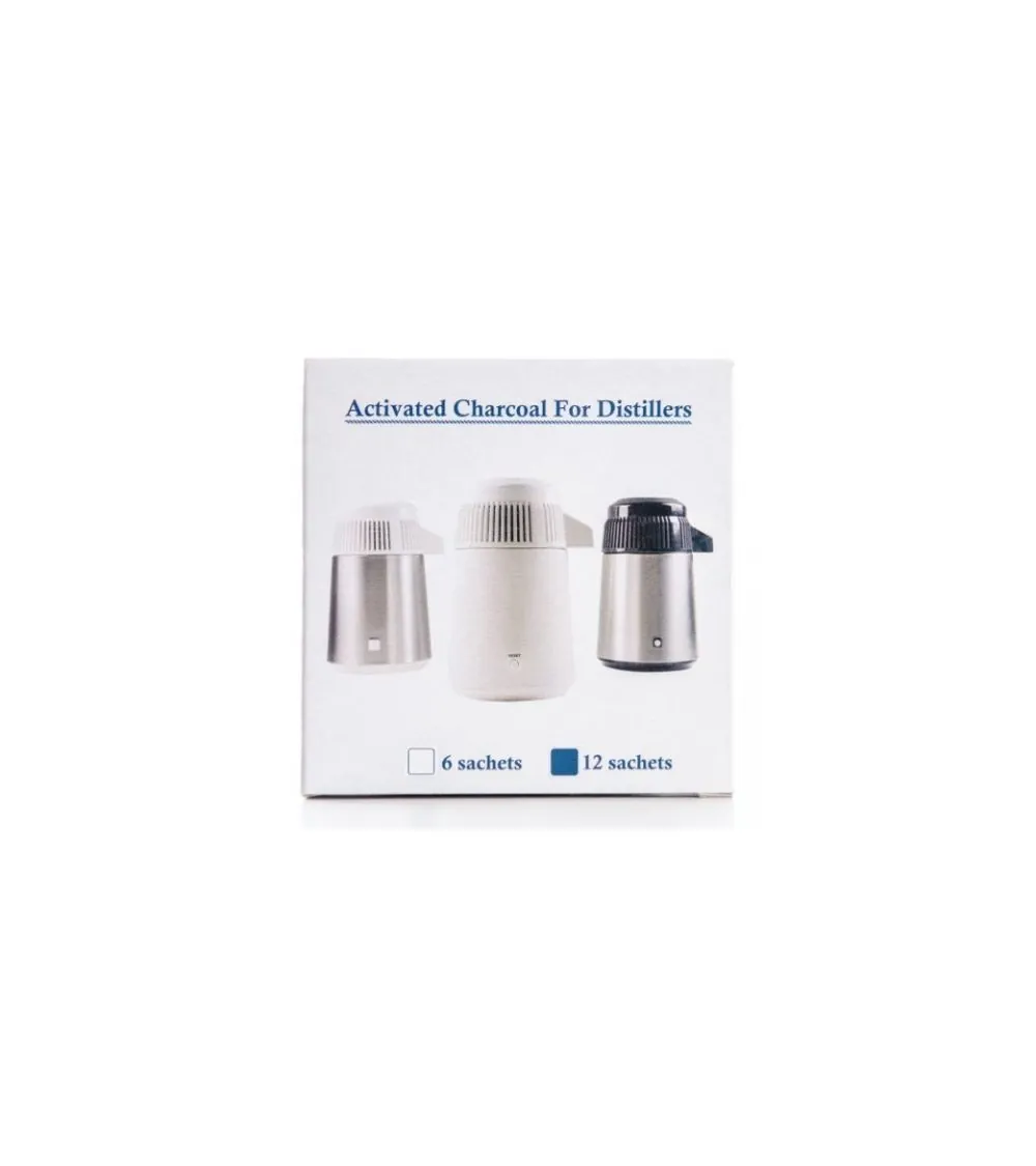 Ar privaloma naudoti anglies filtrus? Medžio anglis filtruoja lakiuosius organinius junginius (LOJ), tokius kaip pesticidai ir tirpikliai. Anglinis filtravimas pašalina šias chemines medžiagas ir gerina vandens skonį. Aktyvuotos medžio anglies komponentai: natūralus kokoso lukštas. Funkcijos: pašalina kvapus ir gerina skonį. Galiojimo laikas: Aktyvuotos anglies paketą reikia keisti kas 25 dienas. Jei distiliuotas vanduo yra keisto skonio arba kvapo, nedelsdami pakeiskite aktyvuotos anglies paketą. Vanduo bus skanesnis, jei vienu metu naudosite 2 maišelius. Nedėkite nenaudotų, neišnaudotų arba šiuo metu naudojamų aktyvuotos anglies paketų į šaldytuvą, nes ten jie gali absorbuoti kvapus ir dėl to suteikti blogą skonį vandeniui. Nauji aktyvuotos anglies paketai gali išskirti nedidelį juodų miltelių kiekį, kuris yra visiškai nekenksmingas žmogaus organizmui. Tai tiesiog miltelinė medžio anglis, ją naudoti yra saugu. Sandariai uždaryti aktyvuotos anglies paketai turi būti laikomi vėsioje vietoje. Pirkdami naują distiliatorių, įpakavime rasite aktyvuotos anglies paketų, arba jų galima įsigyti atskirai.