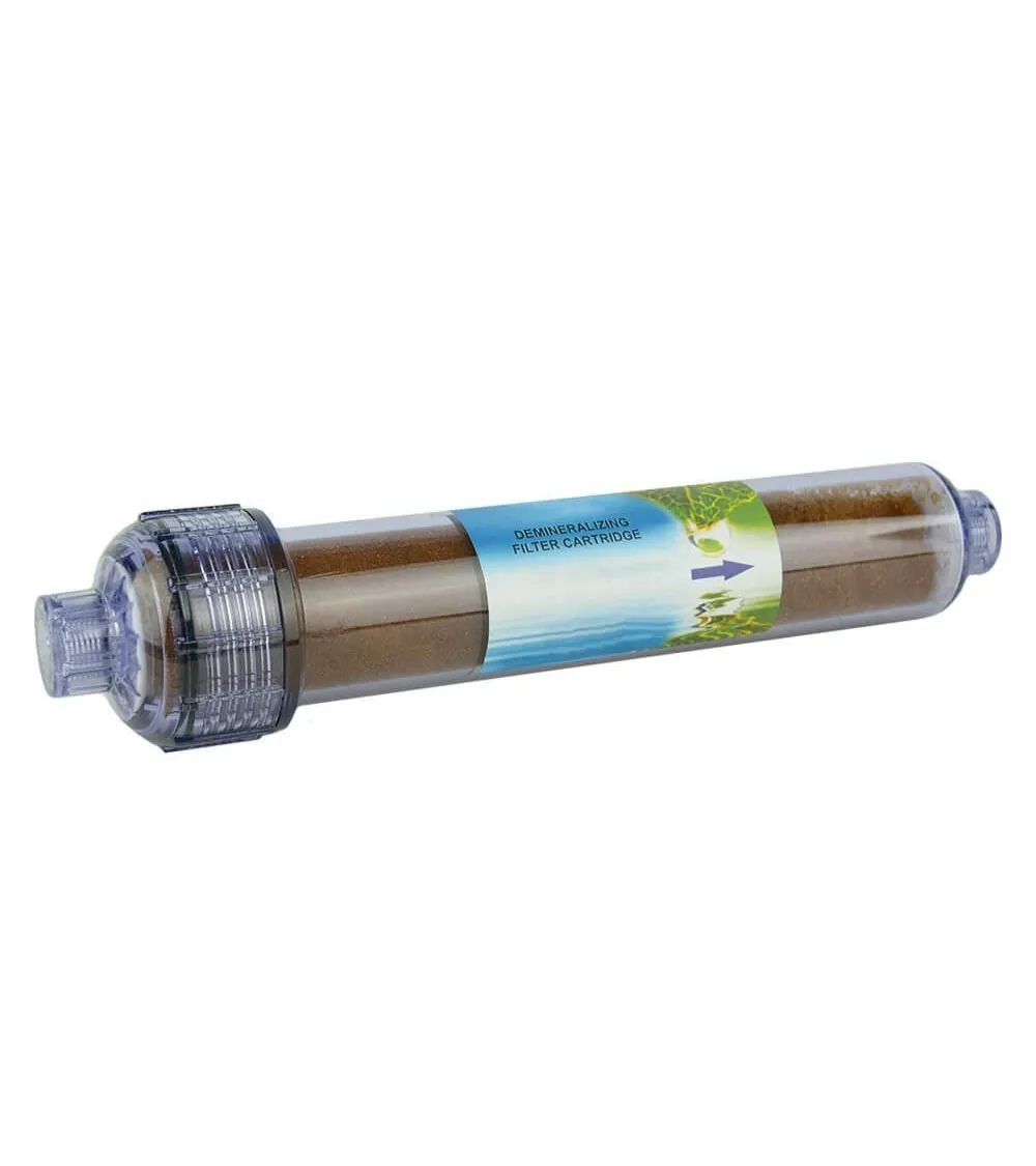 Jonų mainai yra procesas, naudojamas minkštinti kietą vandenį, keičiant kietame vandenyje esančius magnio ir kalcio jonus kitais, tokiais kaip natrio arba vandenilio jonai. Jonų mainai pašalina kietus mineralus. Kasetėse naudojamos jonų mainų dervos, kurios paprastai būna mažų granulių pavidalo. Šiuo filtru išvalyto vandens TDS - apie 2-4 ppm. Palyginimui - distiliuoto vandens TDS būna 0. Filtras keičiamas pagal poreikį pakitus vandens TDS kiekiui.